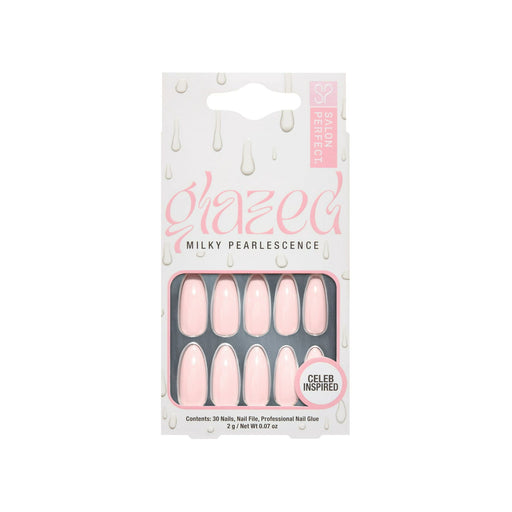 Salon Perfect Glazed Milky Pearlescense Pink Nail Set, File & Glue Included, 30 Pieces