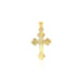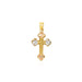 Crafted in tri-color gold, this cross pendant features a flower edge design.