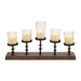 It flaunts an array of 5 wide ribbed pillar candleholders with cylinder glass