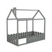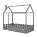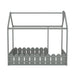 {Slats are not included}Twin Size Wood Bed House Bed Frame with Fence for Kids Teens Girls Boys {Gray}