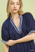 Elevate your casual style with this French Terry Mini Dress, featuring a V-neck with ruffled striped trim for a touch of charm. The puff sleeves add a playful and trendy element to the design, while the stripe contrast detailing offers a chic and eye-catching look. The A-line silhouette and tiered hem create a flattering and feminine shape that is both comfortable and flattering. Please note that this dress is not lined, making it a great option for warmer days or easy layering with leggings or tights. Perfect for a relaxed yet stylish ensemble that can take you from day to night with ease.
