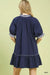 Umgee French Terry Mini Dress with Ruffled Striped Trim